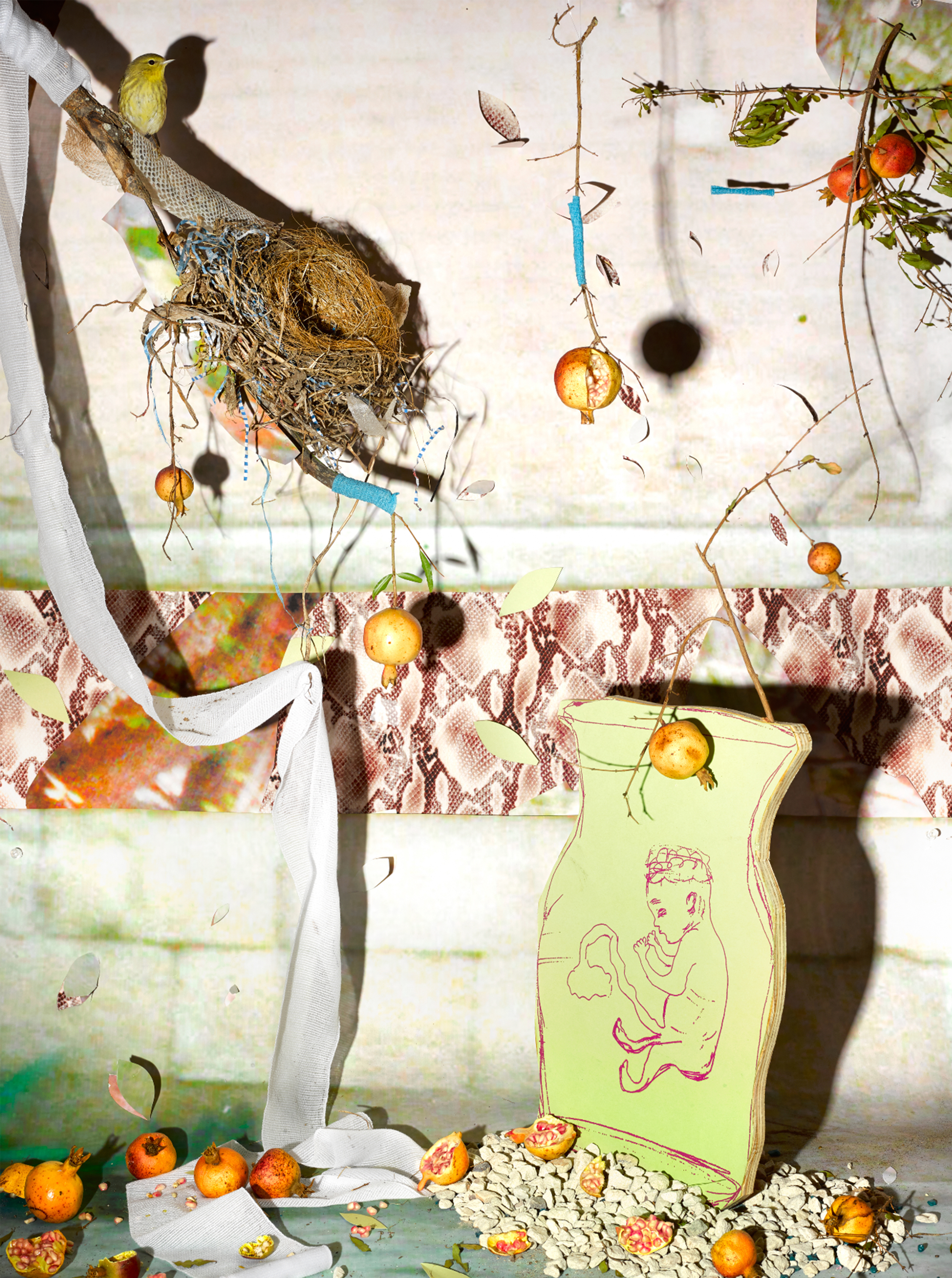 For the first time, I’ve decided to turn my camera inwards to explore my maman and baba’s history of exile from Iran, as well as the transference of the notion of home. The series of tableaux (constructed) photographs ‘ghostwrites’ my parents’ lives and stories, while tracing their time living in Iran as pro-democracy activists and the conditions that led to their displacement to the United States. Casting my parents as the protagonists, each photo symbolically recounts the memories surrounding my mother’s home and the unfolding of their urgent departure as Iran’s regime tightened its response to dissent.